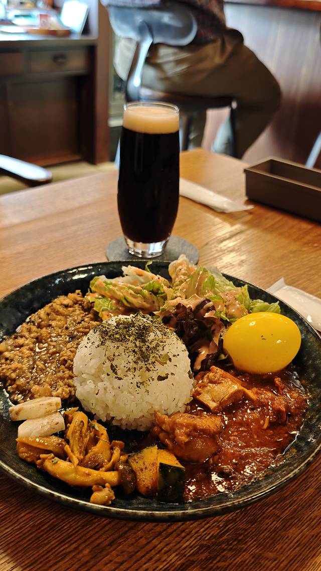 在网上找到ビアつかさ,这家小众吃咖喱饭的,原来是一个小酒馆,点了份定食咖喱饭和奈良啤酒,吃完后拿行李去大阪。