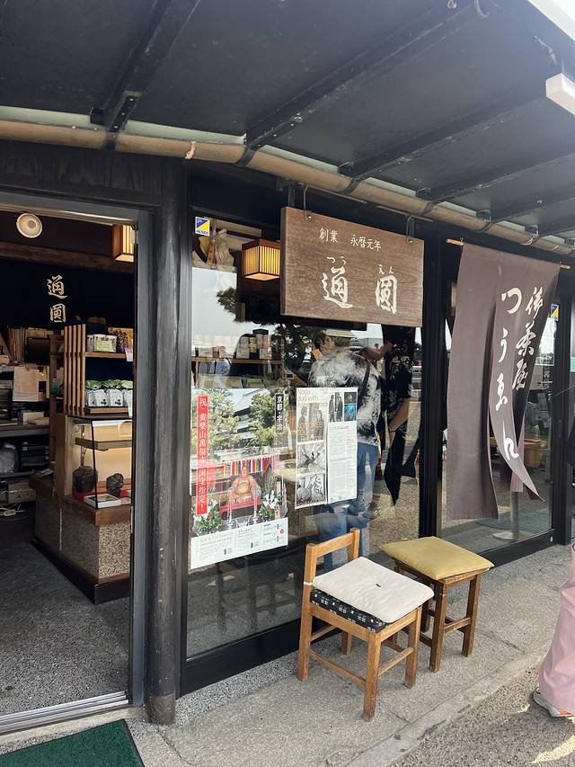 出来后往车站走,在宇治川桥旁的通圆买抹冰淇淋和抹茶小点心,坐在河边看着美景慢慢享用。