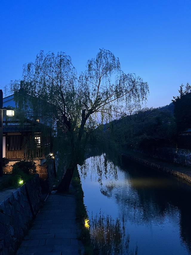 傍晚找了个啤酒屋点了两杯小杯啤酒等待蓝调时刻,看着天气慢慢暗下来。蓝调下的日式水乡美极了,还看到了很多萤火虫。