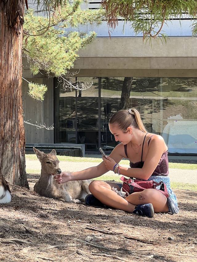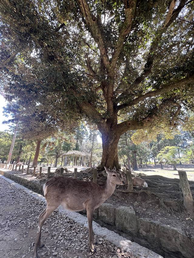 4.21,今天要去奈良撸小鹿啦!离大阪差不多一个多小时车程。出站就是奈良公园,一路好多小鹿,鹿饼200一包10片。