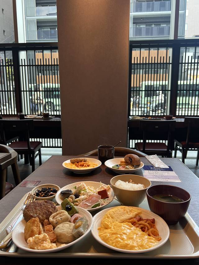 晚餐在酒店旁边街かど屋(烏丸五条店)吃的,就是本地人快餐,点的猪排和猪肉炒洋葱饭,还加了个纳豆,拌米饭真不错。米饭和茶水自助任意吃,米饭自助机器好有意思,还能选小中大三种量。