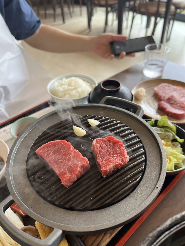中午吃了西川近江牛,点了寿喜锅涮牛肉和铁盘烤牛肉。牛肉脂肪含量高,有奶香,入口即化,都好吃。
