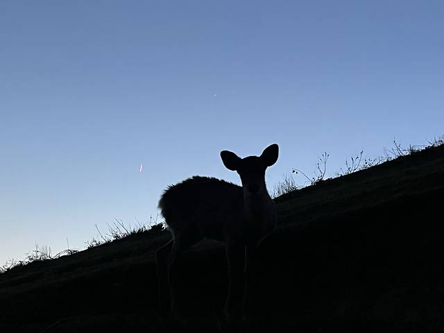 后到二重目等落日,看到了完整的落日,美丽的蓝调时刻下的小鹿。太美了。