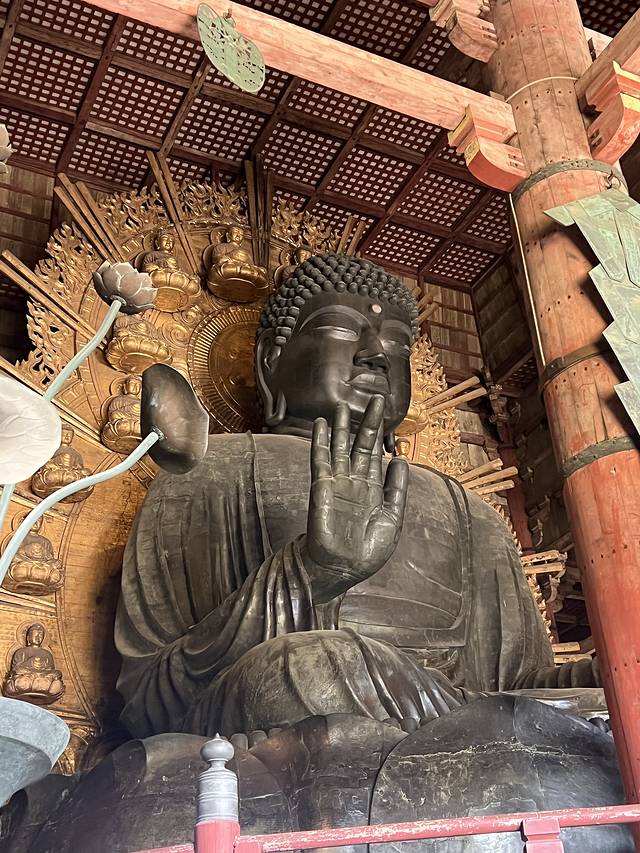 逛了兴福寺和东大寺,是日本东大寺的本寺所在地,寺内大佛殿是世界上最大的木造建筑,殿内供奉着16米高的卢舍那佛像,也是世界上最大的青铜佛像。