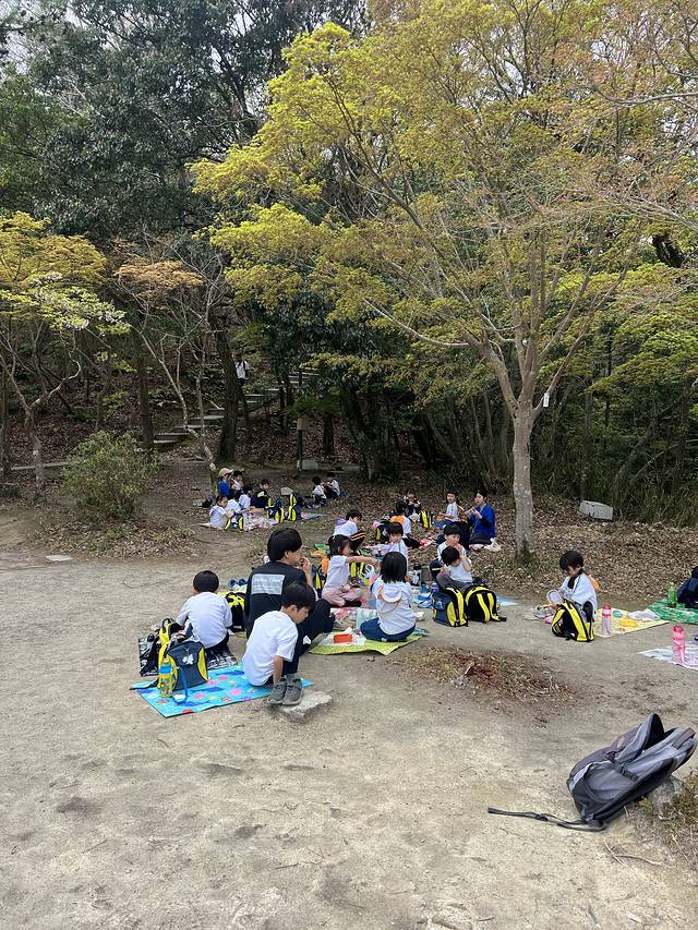 往北面走,在北面山顶还碰到有小学生和老师在野餐。有很大的樱花树。