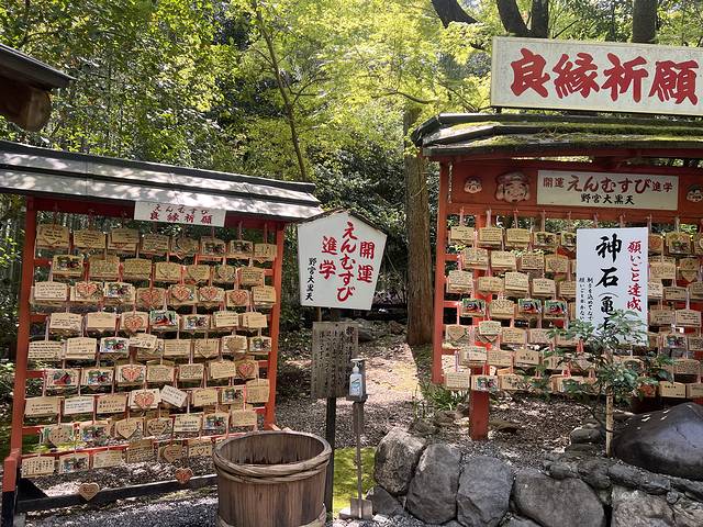 然后去野宫神社,里面可以祈求不同的东西,健康发财安产等。还有常寂光寺、御发神社等可以去看看。