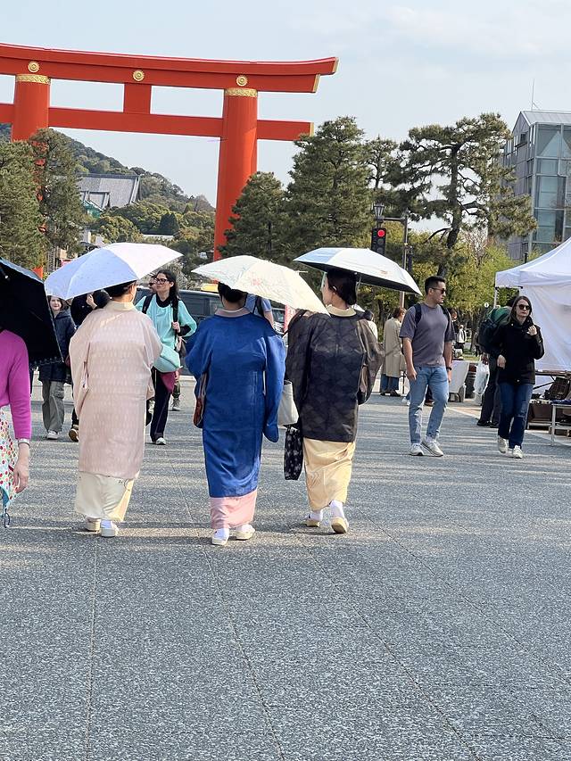 吃完旁边步行300米就是平安神宫,逛了门口的集市,还碰到免费的祈福表演,虽然看不懂还是很有意思的。