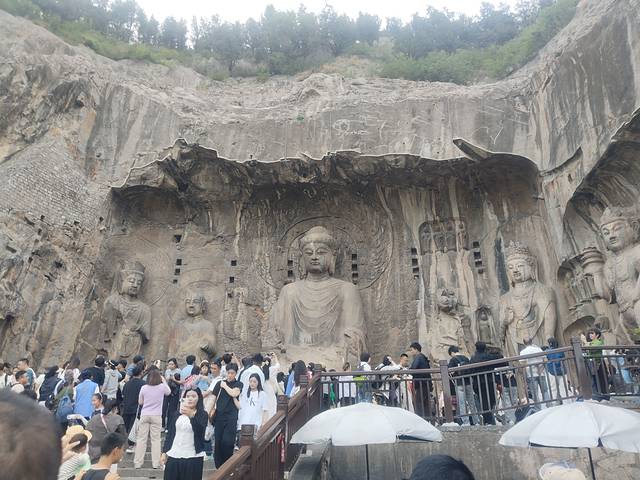 龙门石窟还是很值得一看的。时间有限我们跟着导游主要游览的是西山石窟,岩壁上雕刻的佛像有官方也有民间出资修建,都是代表了向上天祈福的美好愿景。