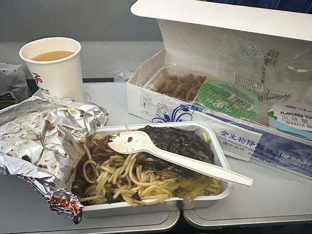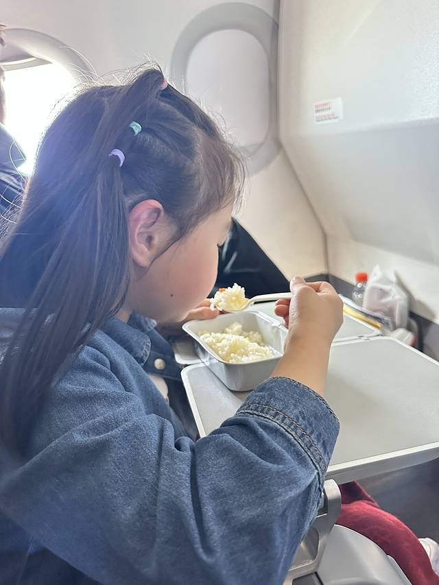 起飞的时候小家伙睡着了,飞机餐,不好吃,我吃了两口