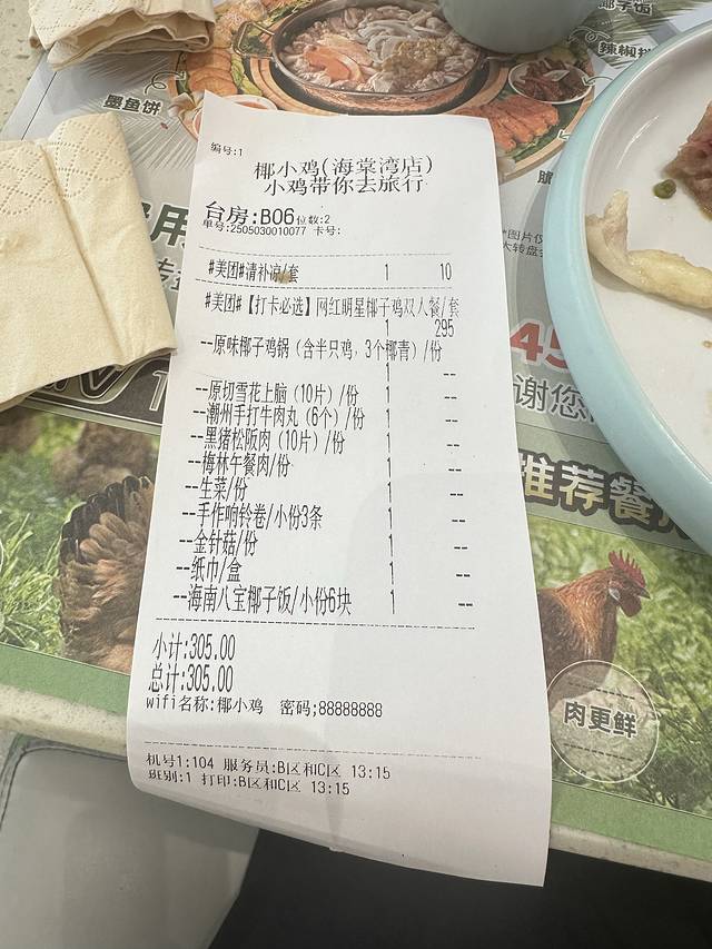 时间就是快,6:50起床,这会儿就12点多了,赶紧回房间洗澡换衣服,去品尝海南特色,椰子鸡