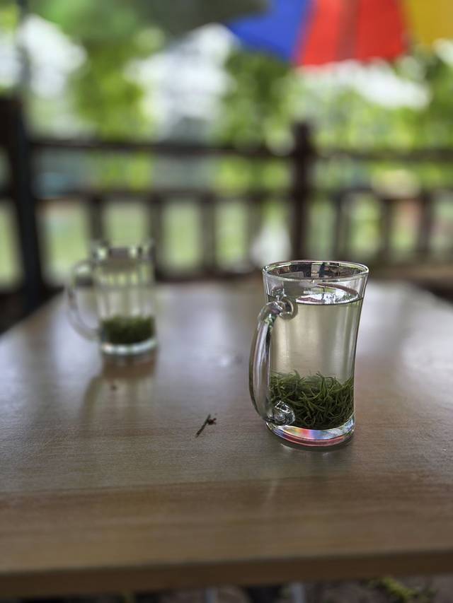 不知道是不是心理作用,我们觉得这里喝的茶最好喝,没有浉河公园里苦,比我们第三天在茶叶市场里买的也好,仔细看看茶叶的形状,感觉真的就是打顶去掉的尖端呢!