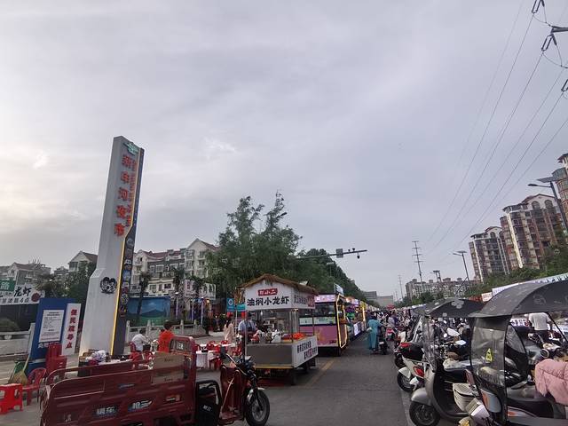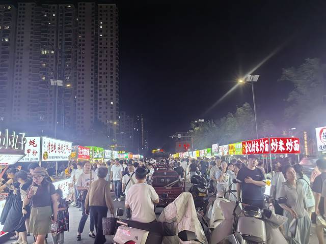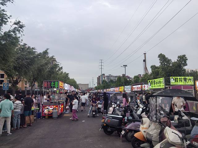打车来时当地司机还问我们,为什么要来这种都是地摊的地方,大概显得信阳不够高大上。但是我们觉得夜市不是就应该都是小摊小贩,顶多有一排固定的小门面,至于吃的东西,肯定有长沙臭豆腐、西安肉夹馍、四川串串、广东肠粉……不过我们要找的是当地特色