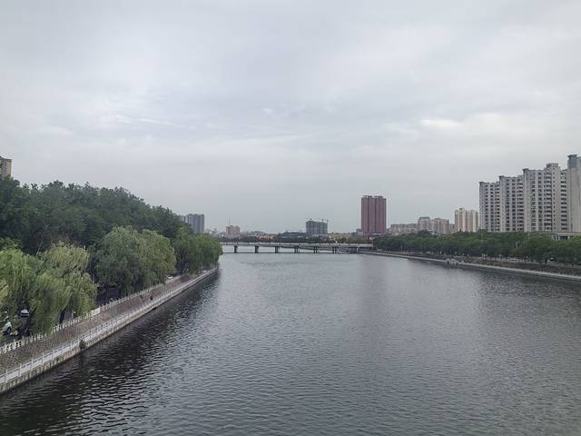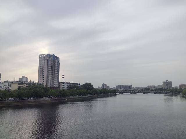 喝了一肚子水,发了一通牢骚,似乎还迷迷糊糊睡了一觉,总得起来上个厕所逛一逛了,于是走到了浉河上的步行桥,据说这桥上可以看日落,但是现在日落时间差不多七点了,咱们逛不到那么晚。