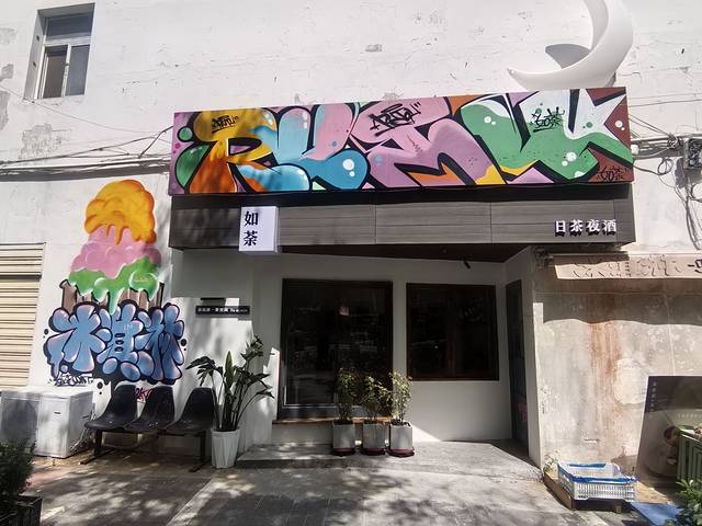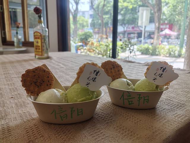 5月2日当天天气很热,我们想吃网上很多人说的毛尖冰淇淋。我们旁边有两个中学:信阳高中和信阳九中,一般来说学校旁边都有很多奶茶店和小吃店,本来也有一个卖毛尖冰淇淋的,但是我们去了说冰淇淋机坏了,吃了他们家主打的毛尖抹茶手工酸奶,虽然味道是还不错,但是我们不甘心啊,干脆花了十元大洋打车来到了网上推荐的“如荼”。