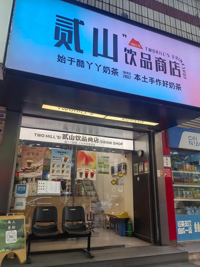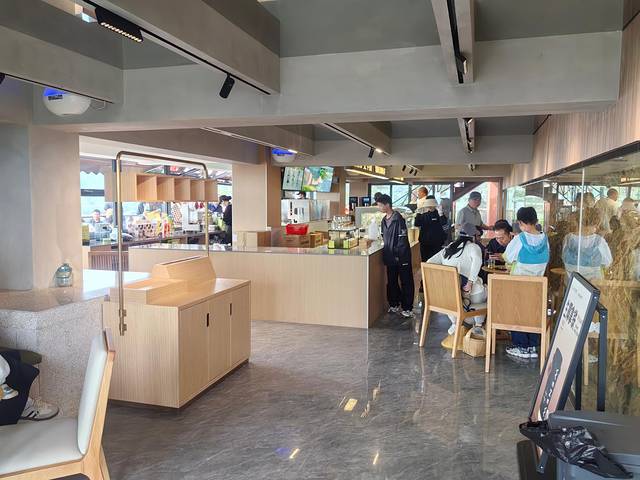 头一天天气很热,这天突然就降温了,到处都是大风预警,据说头一天南湾湖上的船都停运了。不过山顶上确实有点冷,风也格外大,当地搞了个文小新的品牌,卖冰淇淋奶茶甜品等,主打当然是毛尖风味,如果觉得外面冷也可以进来店里吃点别的