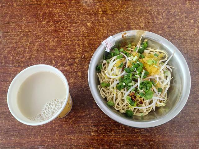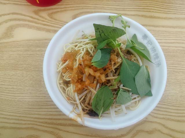对于湖北人来说,肯定得尝尝信阳热干面,我们两天早饭都吃的热干面。有人说“信阳热干面”和“红油热干面”是不一样的,我们不知道是不是这样,反正和武汉热干面不太一样,最重要的是没!有!芝!麻!酱!放的是五香粉(?)和红油,竟然还有豆芽菜打底。