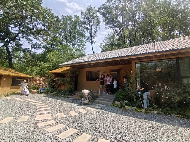 但是没想到现在旅游高峰期,人家也不下班了,没法蹭进去,最绝的是,这个湖竟然走不到湖边,压根看不到湖水我们绕着湖边的公路走了半天,到了一片旧厂房改的“南湖小院”大概是吃饭的地方,能看到湖边的大坝,把湖面挡得严严实实。大概这个湖,或者说水库,确实比较特殊,位于山里面,从地图上看边缘崎岖呈放射状,要看到湖面估计得爬山了。