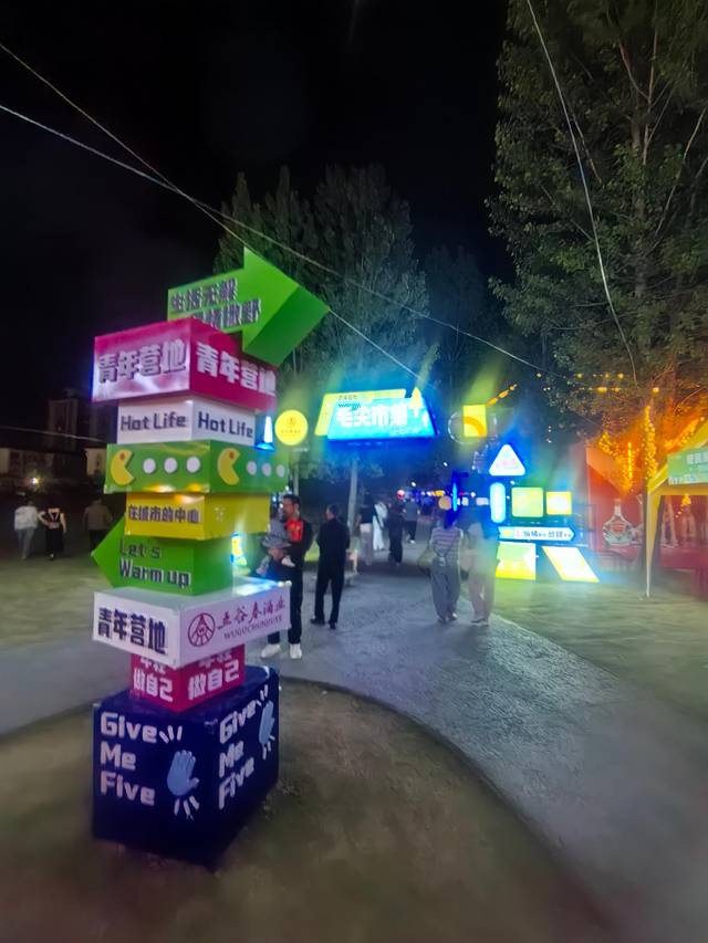 晚上到了司机推荐的“青年营地”,感觉原本应该也是可以露营的地方,但是位于新城区的中心,现在旅游旺季时期就搞成了一个很热闹的集市,分了很多区域,各有不同的主题,既可以参观了解当地特色,也可以卖东西拉动消费。确实是想法很好,也很热闹,是太热闹了,青年营地果然只适合青年人