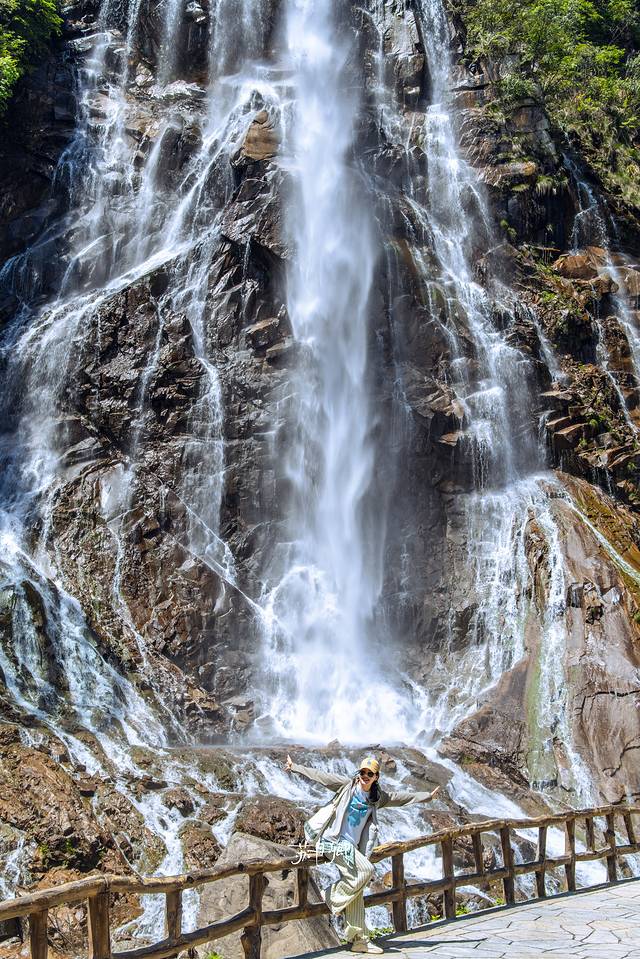✅站在彩虹瀑布前的拱桥上、拱桥前下方的平台上、瀑布左侧的空中玻璃平台,建议穿色彩艳丽的服饰;