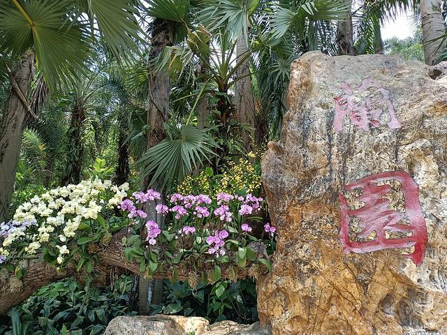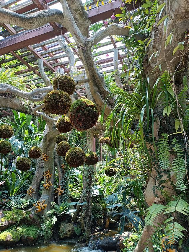 兰园,这些花儿们被培育在了棕榈树的身上,宛如一个大型的空中花园