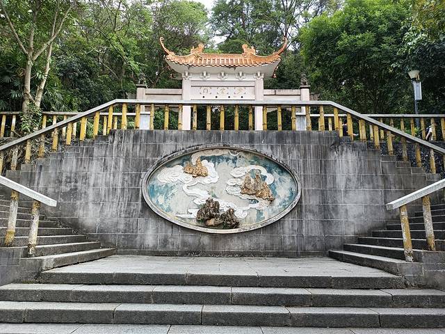 因为五一期间交通管制,打网约车只能在北门下,所以我们从北门进了逛了兰园(空中花园)、荫生植物园,然后排队半个小时坐观光车(单人单次5元)。排队的时间让人心焦,天气热、太阳大,我们在露天中排队,观光车也不多,让我们临时决定不按原计划去观音禅寺了,直接去最高点龙象塔,然后返回。