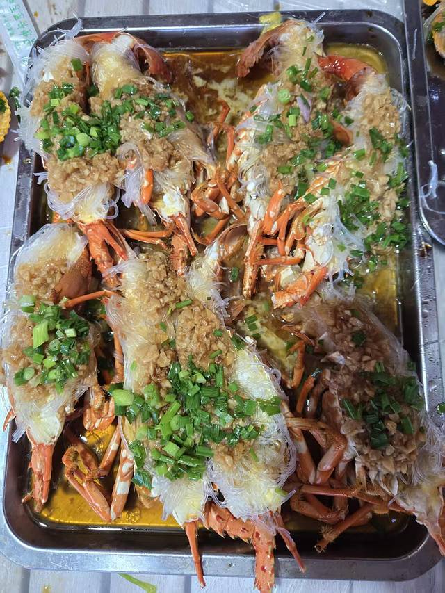 这样的餐盘降低了我们海鲜大餐的格调。这些价格都是五一之前的价格,而且是可以讨价还价的。