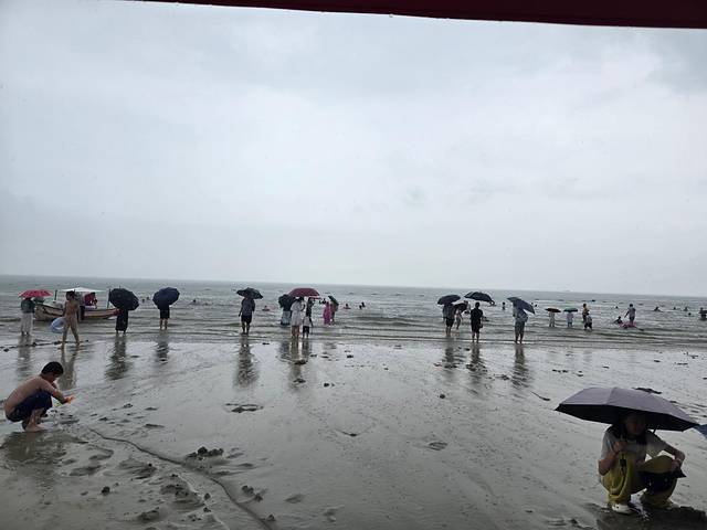 可以从1号门进去,这里有“天下第一滩”的立碑,适合打卡。没想到这天的天气实在变幻莫测。本来我们在玩涠洲岛时看天气预报,每天都预报有雨,但是没有一天下雨,我们都习惯了“狼来了”,狼并没有来。结果,这一天我们安排玩银滩,刚下水,就开始下暴雨。下了一阵,又稍稍放晴,我们又继续,后来,广播直接播报,暴风雨即将来临,浴场临时关闭,请所有人上岸。简直给我们整无语了。我们全上岸换洗好之后,又出大太阳了。没办法,我们只能回酒店休整。银滩我们基本没怎么玩到,也没逛上两步,只知道水比金滩好,沙子更细。