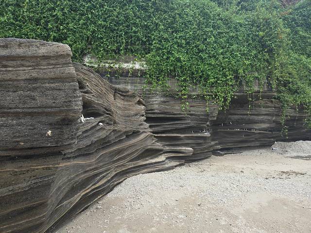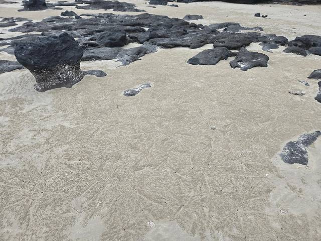 这里我们待了很久。可能图片看不出来,这里有许多小螃蟹在活动。它们不停地往嘴里填沙子,过滤掉能吃的,然后吐出一颗颗沙球,每一个洞洞里有一只小螃蟹,明显的痕迹就是它们活动的路径。有时还会看到两三只螃蟹打架,怎么看都看不够。