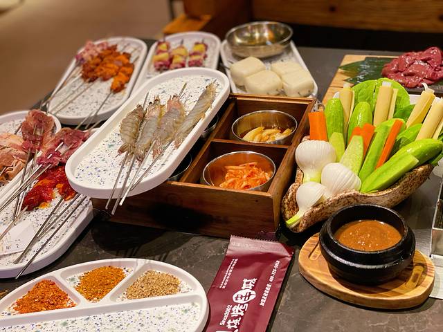 就在民宿对面,主人推荐给我们,决定去试一下,结果吃着串爱上了蘸酱菜!