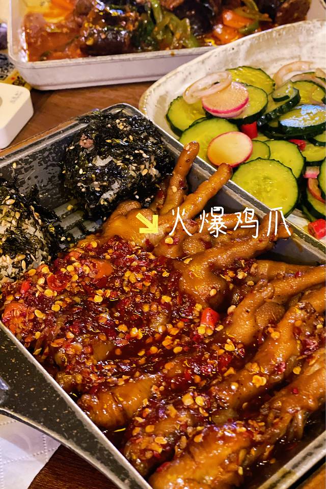 火爆鸡爪真的辣,但真的好吃!!!配上饭团恰到好吃,我们还搭配了甜甜的芝士玉米,配着非常合适。