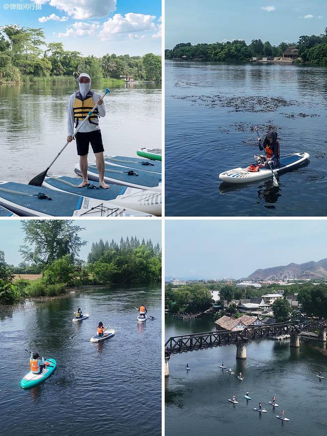 是日早上,来到桂河边体验SUP桨板。在Paddle More Thailand教练指导下,4.8公里桨板旅程成为移动冥想:白鹭掠过水面叼起银鱼,凤凰花倒映碧波如火焰燃烧。当闭眼跪坐板面,皮肤能感知水流方向,风声化作天然白噪音。
