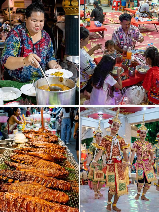 吃完晚饭,我们约逛了当地夜市。20泰铢的现榨甘蔗汁、盲人技师的鹅卵石足疗、草药摊的诺丽果与蛇皮果,以及各种杂耍表演,十分热闹…市井褶皱里藏着最生动的疗愈课。买一串茉莉花环佩于腕间,让香气整夜伴眠。