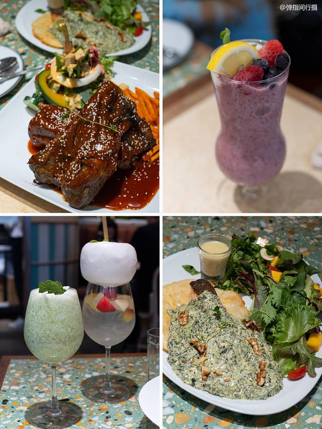 在Ohkajhu餐厅品尝午餐,有机农场直供的食材化身创意料理——泰式香料腌牛扒配蔬菜沙拉让人惊喜,尤其是各种特制饮品更是好看又好喝,创新菜品则尽显新生代对“疗愈美食”的思考。
