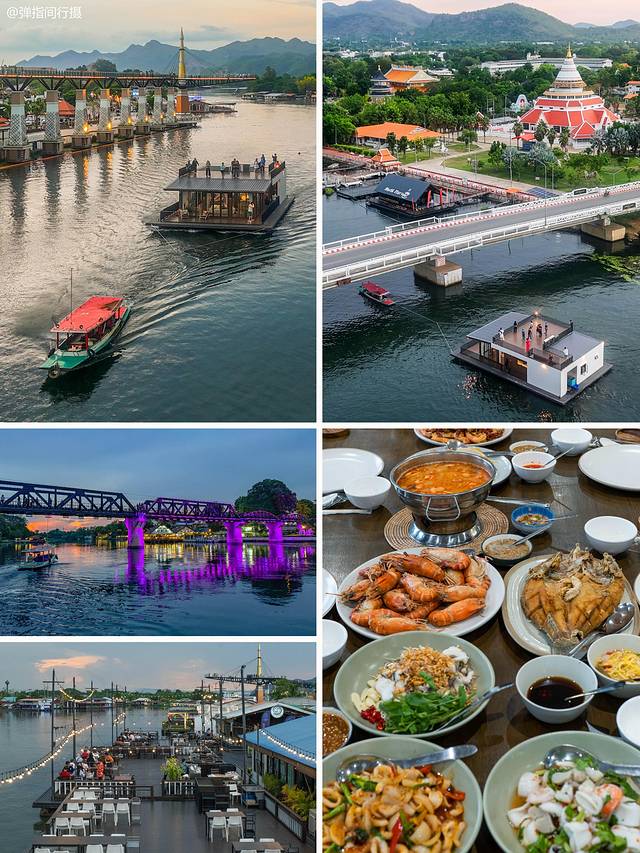 晚上品尝了当地颇有特色的“家居式”游船餐厅,三层柚木船化身移动的水上宫殿,“桂河四时宴”将自然馈赠融入菜品:香茅炭烤桂鱼、咸香白切鸡、盐焗大虾,酥炸猪手等都非常美味。当船行至桂河大桥遗址,大家并排观景,历史与当下在夜幕中完成对话。