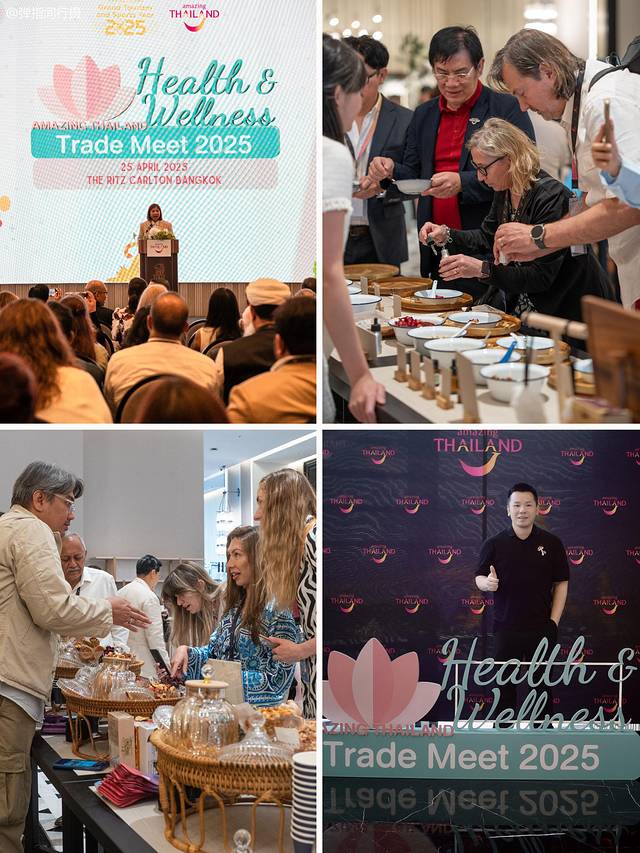 次日早上,我们一行参加了在曼谷丽思卡尔顿酒店举办的Amazing Thailand Health & Wellness Trade Meet 2025。这场盛会汇聚全球健康旅游产业链代表,共同探讨泰国健康和疗愈旅游产业的未来发展方向,旨在进一步推动泰国成为全球知名的健康旅游目的地。作为媒体受邀出席本次活动,深度了解泰国的疗愈养生文化,让我大开眼界,受益匪浅。泰旅局特设的体验区尤为亮眼: