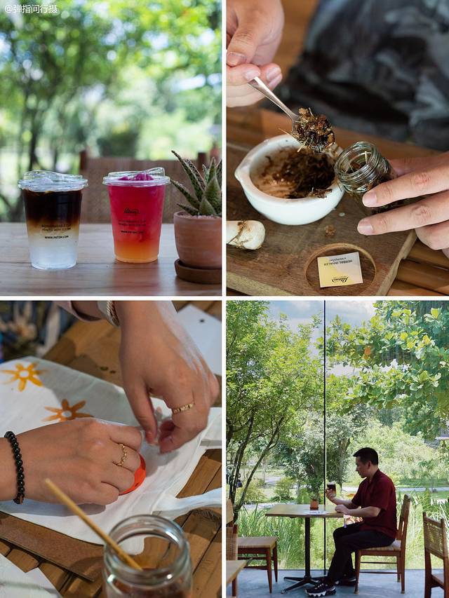 Patom Organic咖啡馆:必点有机椰子咖啡,椰清甘甜与咖啡醇苦交织,玻璃花房景致宛如油画。