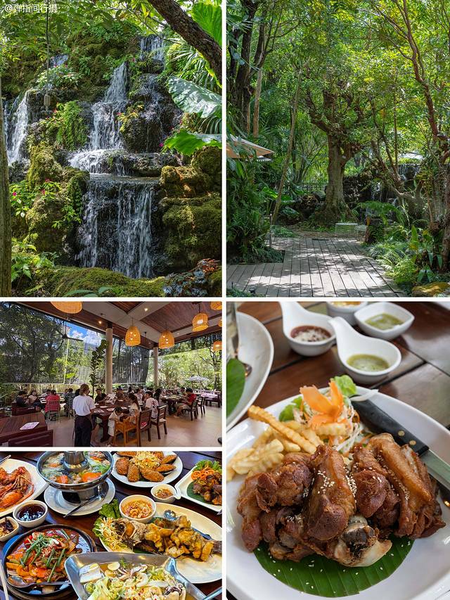 午餐打卡的餐厅也很有意思,将生态艺术玩到极致:青苔陶土墙渗出晨露,餐桌嵌在人工溪流间。“森林呼吸套餐”,道道美味,坐在森林流水间品尝美食,恍若在参与精灵宴席,非常治愈。