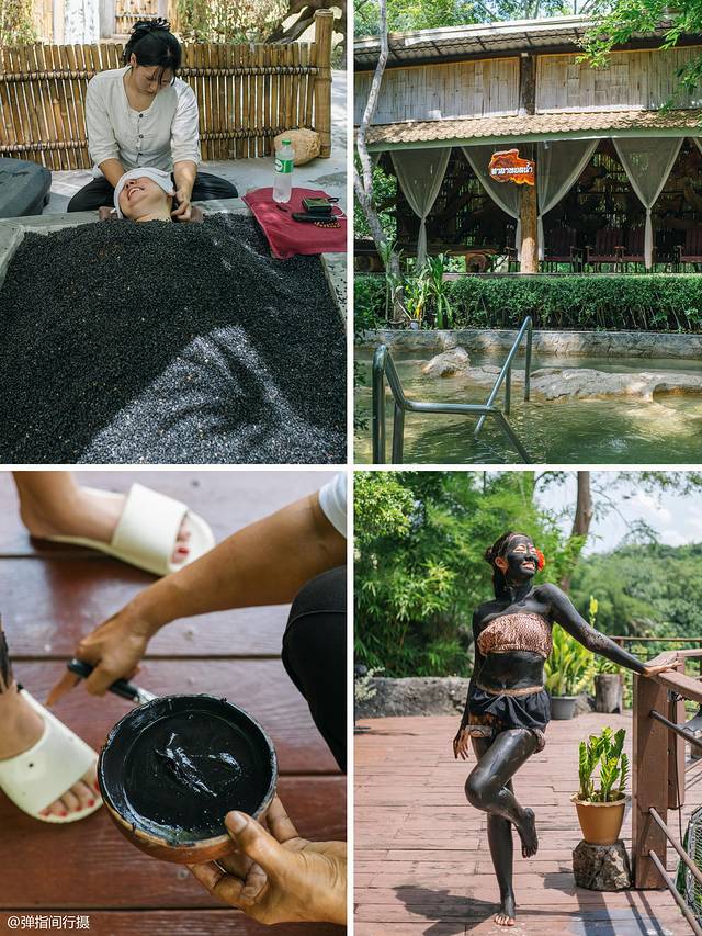 而最有意思的还是全身矿泥SPA,清迈矿泥混合酸豆汁液,在陶钵中搅拌成流动的墨沙。当微凉的泥浆覆上脊背,矿物颗粒摩擦出细碎乐音,硫与镁离子穿透角质层直抵真皮。酸豆的果酸如春风化雪,剥落经年疲惫;姜黄暖流沿经络游走,连足底都泛起琥珀色微光。