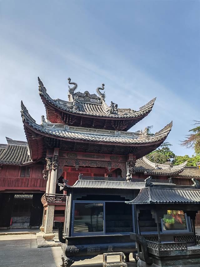 最顶层“逍遥楼”匾额出自唐颜真卿的真迹,殿内供奉着石弥勒像,千年以来,香火不断,梵音缭绕~阿弥陀佛~