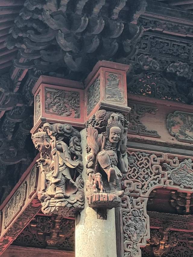 嘉庆年重修的。庙内的砖、石、木三雕多而精美,世称"三绝"。庙内古戏台高大气派,世属罕见,还是早期越剧艺人们演出的重要场所。