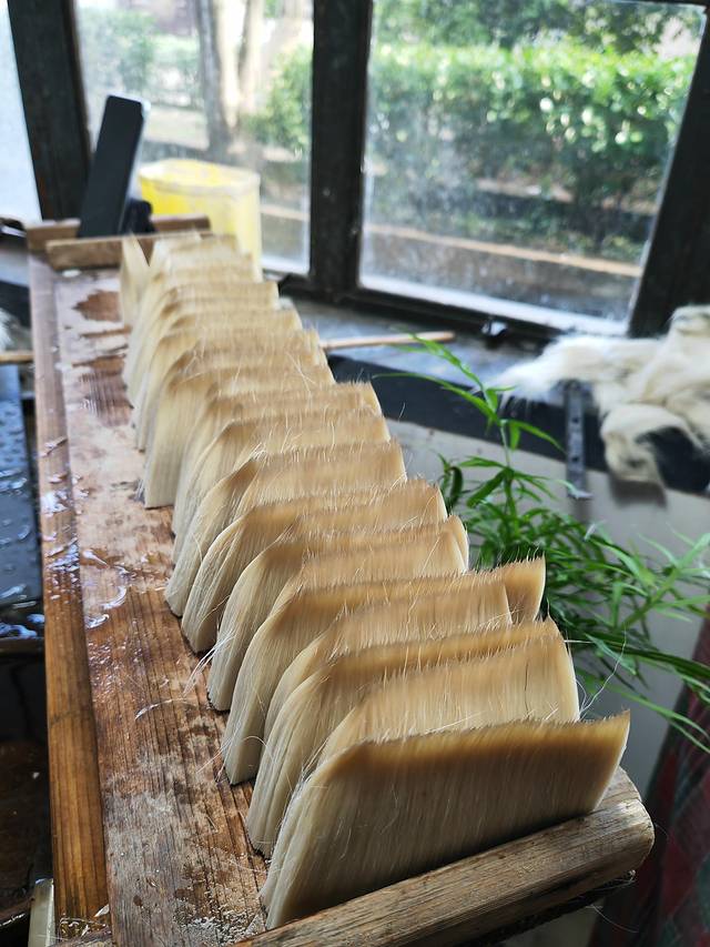 4、善琏湖笔厂研学,让小朋友亲临一下,制笔需要经过的择料、水盆、结头、装套、蒲墩、镶嵌、择笔、刻字等十二大工序,感受湖笔制作的传承技艺。——回去给我好好练字去~