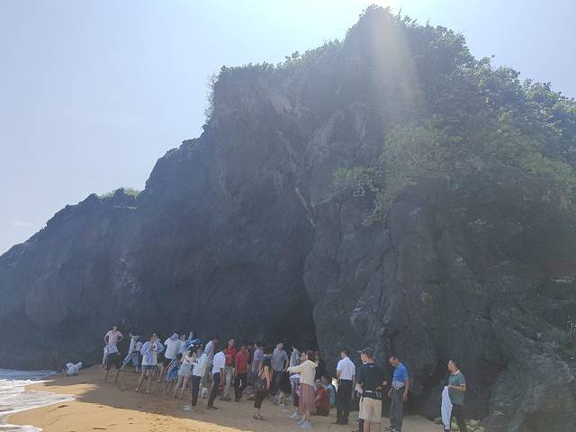 桥依山崖而建,面前就是波澜壮阔的山钦湾,正好是靠右行驶,风景都在右手边,零距离接触的满足感。因为桥上不给停靠车辆,便慢慢地开过桥,美景敞开了看。过桥之后有一条下行通道可徒步到达燕子洞,以前是摆渡车才能用的,现在不知为何取消摆渡了,游客可以自行前往,车可以停在路边,但是下午三四点已经停得满满当当;通道口往前一点还有私人收费的停车场。从通道往下走就到了海边,但是去燕子洞的话还得再走一段。