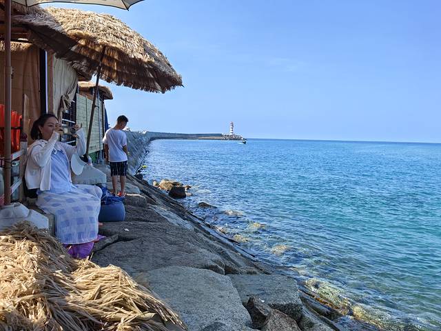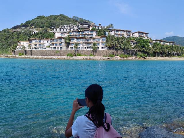 退房后就开始今天的行程了。事先骑着小电驴摸清了路线,开车出门先直奔海湾。海湾上有很多本地阿哥在推销海上项目,冲浪、皮艇、汽船,花样很多。这里很不幸踩了一个雷,一家人被阿哥软磨硬泡花三百大洋坐上汽船在离岸五到十米的近海兜了一小圈,还是经过了一番讨价还价的,还以为划得来,结果后来过去神州灯塔路上,摆渡车司机说那里一百五就能享受一样的项目,而且灯塔周围的海景明显比这边海湾更加出片,还真是城市套路深、一定得货比三家才行。