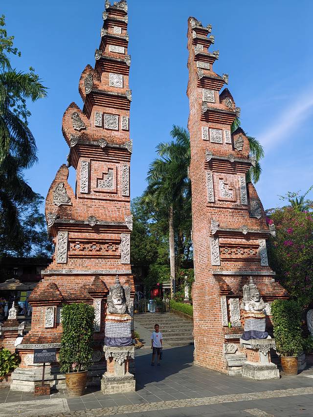 距离风情街只有3公里路程,开车不到10分钟,下午将近五点到的,本省身份证门票可半价,所以四个人一共花个80就可以任意参观。游客并不算多,很多人直接就在门口花个几十元一百元换上南洋特色的服饰,尽情打卡。总体评分可以打85以上,个人感觉也是比较惊艳的一处景区,相当有松弛感:景区并不大,走走停停也就一个小时出头;景区的建筑都比较古朴,而且整个景区都在绿荫下;刚好还碰上当天最后一场演出,也就是比较简短的歌舞表演,虽然时间不长,但是那种很欢快的节奏让人印象十分深刻,有点直达心灵深处的意思;另外还推荐根缘馆,各种大大小小奇形怪状的树根,尽情感受雨林的神秘,很壮观。