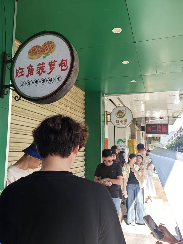 接下来最重要的事当然就是旺角菠萝包啦。八点半开业,用完早点八点十五,24小时内第三次来到这个不起眼的店门口,这回是妥了。门还没开呢,很多帅哥靓女已经在排队了,店家友情提示排队要在面对店面左手边的特产店门口排,那边的老板娘人也很好,还趁机给顾客们推销自己的商品、还能免费品尝。幸好出餐速度挺快,点单、付款、报手机号等餐,总共只花了四十分钟就拎包走人,各种能接受的口味的都拿了,才38,有个68.8的全家福怕吃不完都没点。真的名不虚传!但是排队一定要趁早,中午十一二点就售罄!
