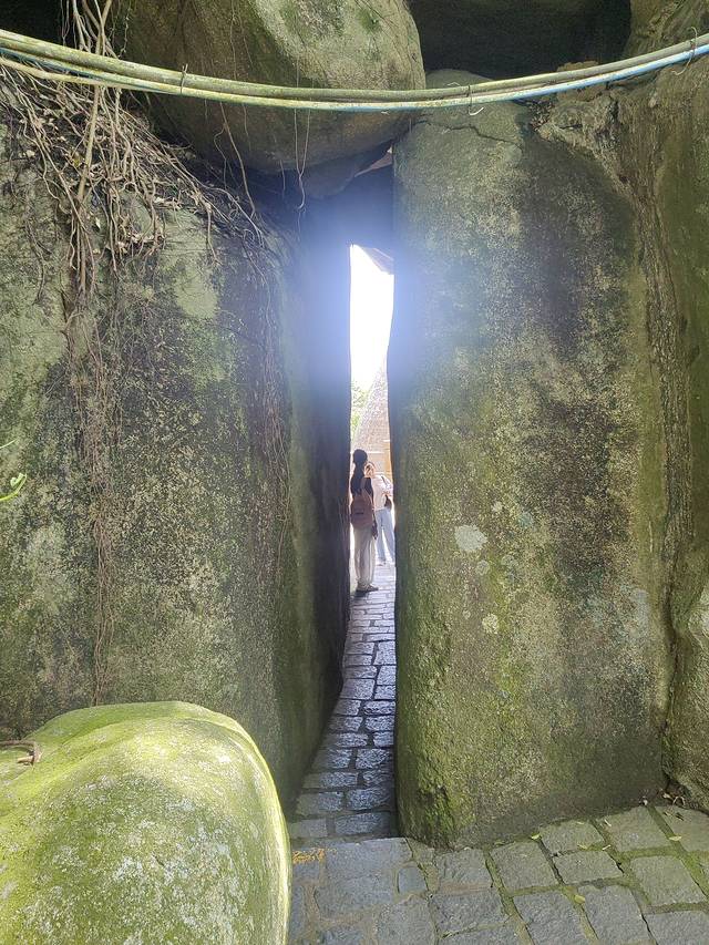 离开第一个网红打卡点,大概半小时后,就来到了深度游的第一站:“海南第一山”东山岭。这几年在海南翻过这么多的山峰,一直怀疑这座不到200米高的小山岭有这样响亮的名号就是个噱头,更担心名声在外会不会导致这里的人为痕迹和人造景点泛滥,毕竟山水情怀主要离不开的是拥抱大自然。事实证明:把期望值放低一点是有很大的好处的,可以用“惊艳”二字来给此行贴上标签了。不是人为,也没有人造,而是人文,称之为微型袖珍版峨眉也不为过。自然景观和历史文化的交织,穿梭行走在巨石之间是满满的压迫感,但是欣赏着巨石上的石刻艺术却又是不一样的精彩,再到山间并不算太大的寺庙里面洗涤一下心灵,一股“山不在高,有仙则名”的即视感。山顶也是三百六十度无死角饱览全景,视野没得说。