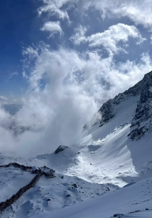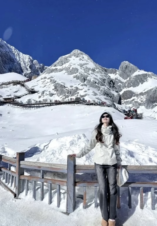 雪山上都是雪,反光很强,一定要戴个墨镜一不然眼睛根本睁不开,还有帽子保护脑袋雪山上风大吹得头疼
