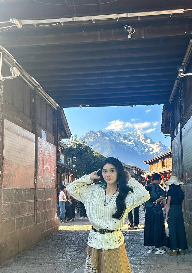 离雪山非常非常近,在车上的一路就能眺望到玉龙雪山,下了车更觉得近到可以摸到!古镇里可拍的点太多了爱拍照的宝们有福了: