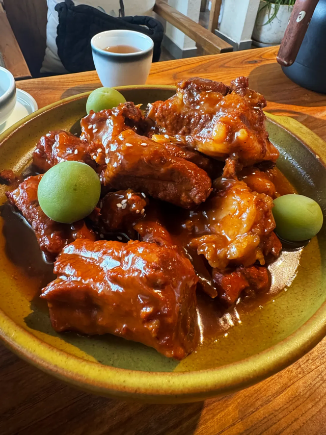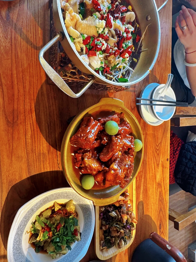 来云南丽江旅游选的一家餐厅,这个情人梅烧排骨太好吃了!!必点!!餐厅氛围很安静,环境也特别好,服务员都很热情有求必应。酸角大王很好喝,喜欢酸的可以尝试下,菜量很大!!!