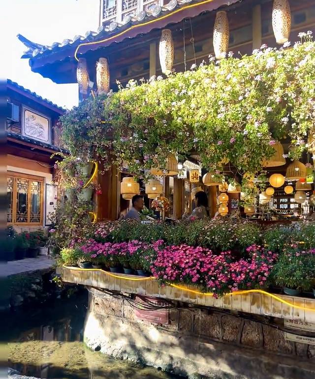 慢慢悠悠逛了一天丽江古城,随处可见的花,天空蓝得像幕布,太阳正好,没有出片任务,没有打卡目标,就这么随心所欲地逛,累了坐下还能免费听头上酒馆里传来的歌声,云南旅游太美好了